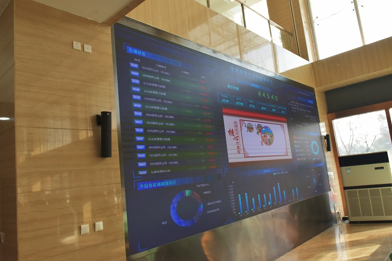 宝鸡高新区政务服务大厅集成系统设备采购项目于2018年11月开工建设,,,,2018年12月28日宝鸡高新区行政审批服务局(政务服务中心)揭牌并投入使用。。项目涉及LED大屏显示系统、、、、安防监控系统、、排队叫号系统、、、背景音乐广播系统、、综合布线等。。